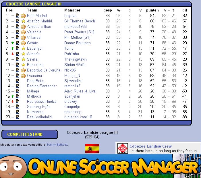 De derde editie van de Cdoezoe Landsie League. Ditmaal in Spanje. De competitie stond vrijwel het hele seizoen dicht bij elkaar, pas in de laatste paar wedstrijden werd het gat met Atletico Madrid en Real Madrid te groot voor de achtervolgers. Real Madrid trok uit eindelijk aan het langste eind en pakte daarmee de dubbel.